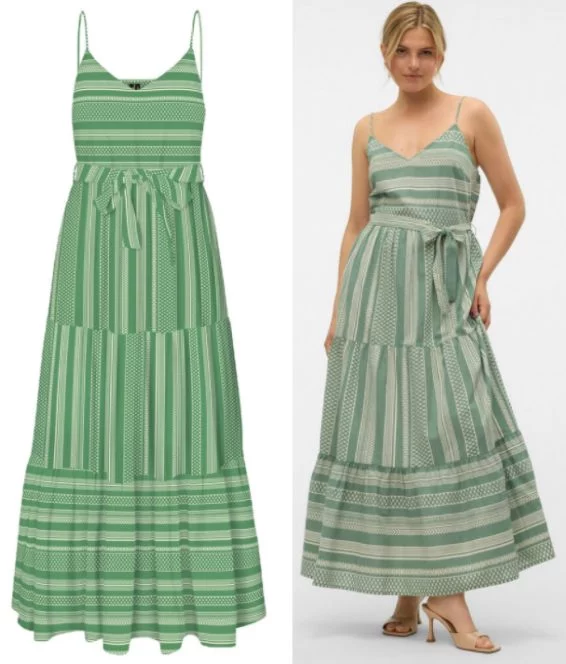 Este vestido tobillero de tirantes es la prenda ideal para quienes buscan un look fresco, femenino y elegante, su escote redondo y su detalle de cinturón ajustable te permiten personalizar el ajuste del vestido a tu figura; los volantes en cadera y bajo aportan una mayor fluidez y vuelo al vestido, creando un efecto muy favorecedor.
