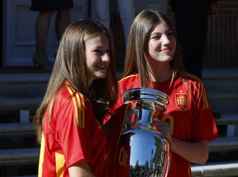 Al entregar la camiseta, tanto Felipe como Leonor y Letizia posaron con ella, pero Sofía mostraba cierta resistencia para sostenerla. Su madre la animó a sujetarla durante unos minutos para posar y ser fotografiados con el regalo de la Selección. Sin oponer resistencia, Sofía finalmente lo hizo cómodamente después del despiste. Esta situación se repitió el domingo por la noche cuando el Rey y la Infanta celebraron con los jugadores la victoria. Felipe VI tomó con emoción la copa y le entregó el trofeo a su hija para que lo levantara. Aunque tímidamente se mostró reacia al principio, Sofía finalmente sostuvo la copa junto a su hermana en esta ocasión.