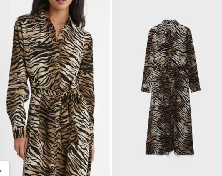 El vestido camisero largo se ha convertido en un clásico atemporal que nunca defrauda. Su versatilidad lo convierte en la prenda ideal para cualquier ocasión, desde un look casual para el día a día hasta un evento más formal; el modelo de Stradivarius en color leopardo destaca por su elegancia, comodidad y practicidad, convirtiéndose en una pieza esencial en tu guardarropa.