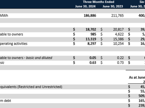 Polaris Renewable Energy Inc. (TSX: PIF) ("Polaris Renewable Energy" o la "Compañía"), se complace en informar de sus resultados financieros y operativos para los tres y seis meses finalizados el 30 de junio de 2024. Este comunicado de resultados debe leerse junto con los estados financieros intermedios consolidados condensados de la empresa, el análisis y la discusión de la dirección, que están disponibles en el sitio web de la empresa en www.PolarisREI.com y se han publicado en SEDAR+ en www.sedarplus.ca. Las cifras que figuran a continuación se expresan en dólares estadounidenses, salvo que se indique lo contrario.
