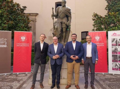 En el acto de firma del acuerdo, que ha tenido lugar en el edificio del Rectorado de la Universidad de Granada, han estado presentes el rector de la UGR, Pedro Mercado; el director de la Cátedra, Mariano Sánchez; el director general de Macrosad, Andrés Rodríguez y el director de Nutrición de Nestlé Iberia, Luis Pinto.