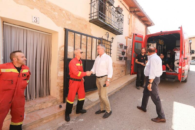 El consejero de Medio Ambiente y Turismo del Gobierno de Aragón, Manuel Blasco, ha asistido a la planificación de los trabajos de extinción y ha visitado la localidad afectada, hablando con sus vecinos.