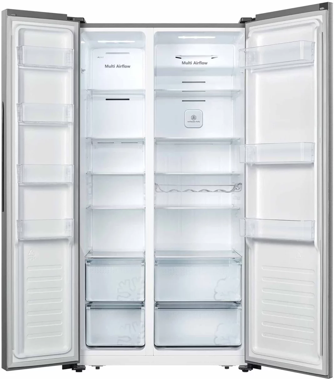 Cerrando la selección de Carrefour encontramos el frigorífico de dos puertas Hisense RS677N4BIE, un modelo que destaca por su generosa capacidad de 519 litros y su avanzada tecnología. Con unas dimensiones de 178,6 cm de alto, 91 cm de ancho y 64,3 cm de fondo, este frigorífico ofrece un amplio espacio de almacenamiento sin sacrificar las prestaciones tecnológicas.