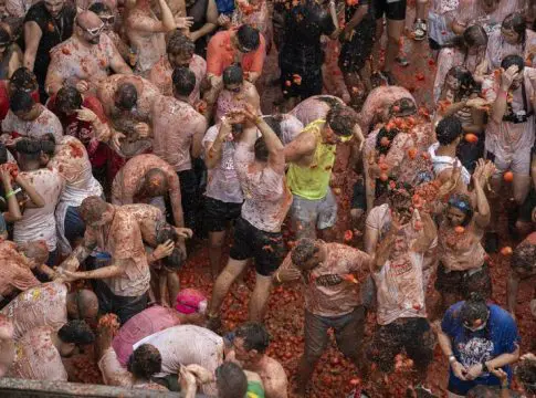La tradicional fiesta de la Tomatina ha vuelto a teñir de rojo las calles de Buñol, una localidad valenciana que ha sido testigo de la celebración de esta icónica batalla de tomates durante 77 años consecutivos. Este año, la edición ha congregado a alrededor de 22.000 personas de 28 nacionalidades diferentes, quienes se han lanzado más de 120.000 kilos de tomates en una fiesta declarada de Interés Turístico Internacional en 2002.
