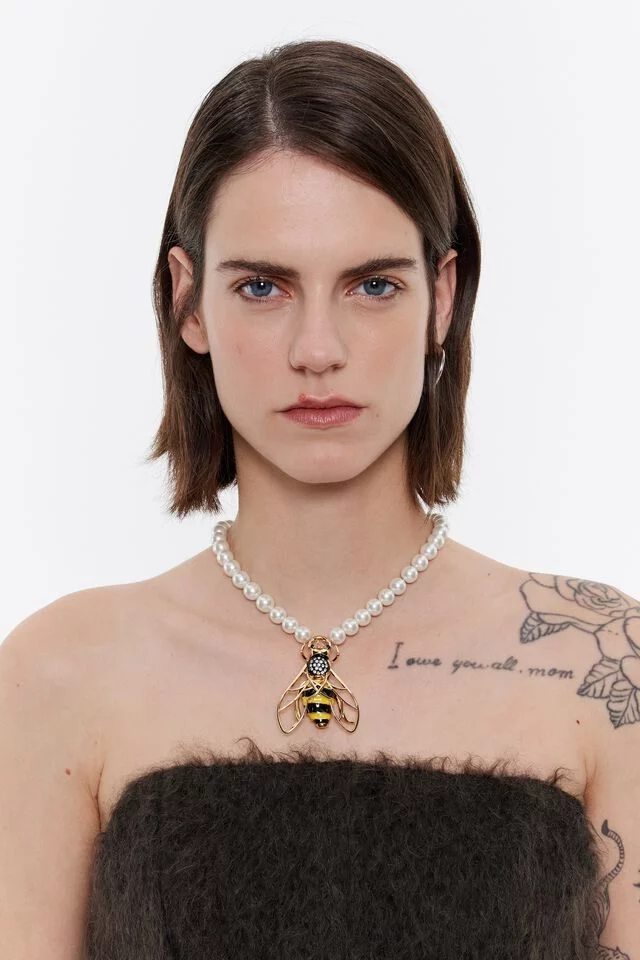 Con una longitud aproximada de 44 cm, este collar ofrece una versatilidad que lo convierte en un accesorio ideal para diversas ocasiones. La combinación de perlas con el elemento decorativo en forma de abeja no solo realza tu look, sino que también aporta un toque de glamour que se mantiene relevante en cualquier temporada. Aprovecha la oferta de Bimba y Lola para adquirir una pieza atemporal que no solo eleva tu estilo, sino que también asegura una durabilidad y sofisticación que justifican su excelente relación calidad-precio.
