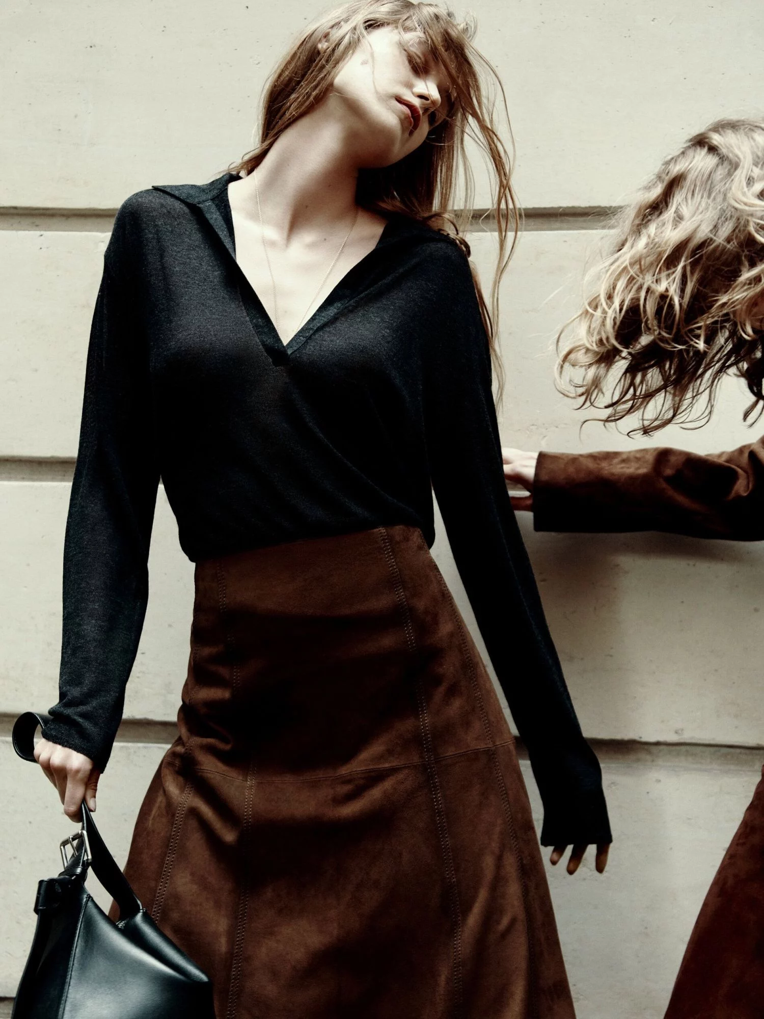 1Falda midi piel ante costuras de Massimo Dutti