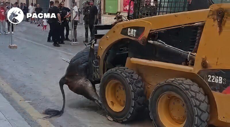 En una de las secuencias, se observa cómo uno de los animales recibe una cornada en el costado y es empujado por el novillo durante varios segundos, aún con el asta enterrada, mientras cojea y jadea hasta la esquina de la plaza. Según testigos, los cadáveres de los animales fueron llevados al Punto Limpio.