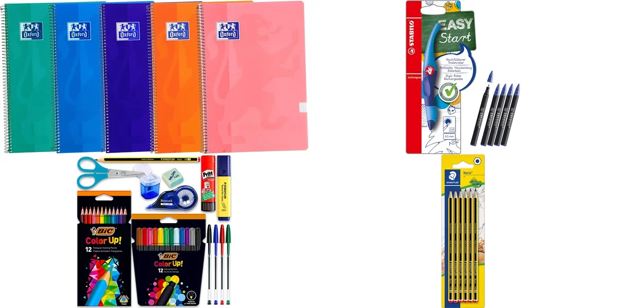 Incluye una amplia gama de útiles de papelería, desde lápices de colores y rotuladores hasta bolígrafos Bic, asegurando que tus hijos tengan todas las herramientas para el éxito académico.
