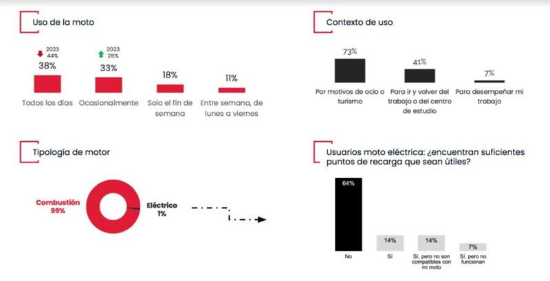 Una de las principales conclusiones del estudio es que el 41% de los usuarios de motos tiene previsto comprar una motocicleta en menos de un año. Los usuarios buscan principalmente tecnología más moderna (23%), un nuevo diseño (22%) y más potencia (15%), siendo estas las tres principales razones de compra. Además, la moto de ocasión sigue siendo la más buscada, con un 38% de los usuarios decantándose por este tipo de modelo, frente a un 34% que optaría por una moto nueva.