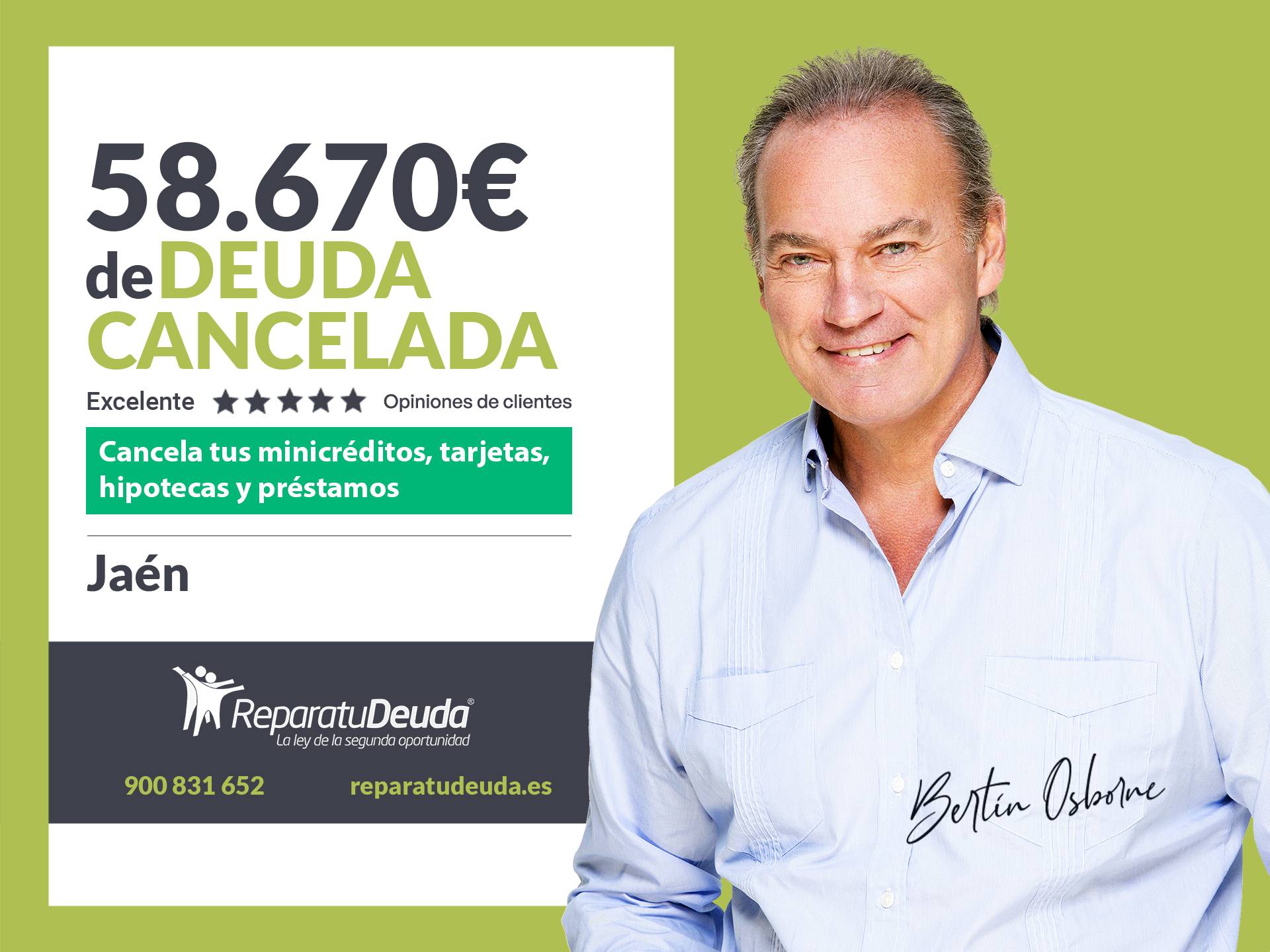 Repara tu Deuda Abogados, despacho de abogados líder en España en la tramitación de la Ley de Segunda Oportunidad, ha logrado una cancelación de deuda en Jaén (Andalucía). Mediante la gestión de Repara tu Deuda Abogados, el Juzgado de lo Mercantil nº1 de Jaén (Andalucía) ha dictado la exoneración del pasivo insatisfecho (EPI) en el caso de una mujer con una deuda de 58.670 euros.
