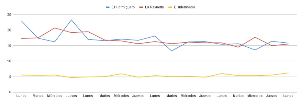 De hecho, solo revisar los datos de dos programas clave del mismo bloque, como los diferentes formatos de Gran Hermano en Telecinco que han ocupado el espacio que dejó el Babylon Show o el espacio satírico 'El Intermedio' que dirige Wyoming en la sexta, que en estos 30 días han mantenido un promedio muy distante al de los dos gigantes.