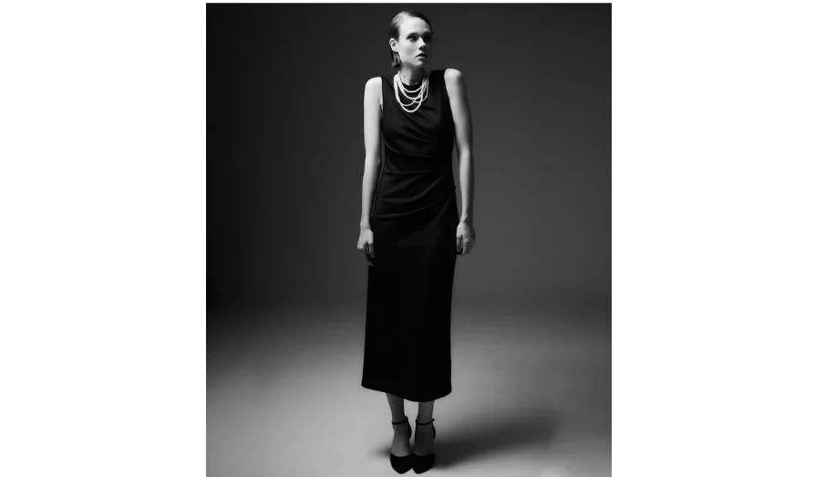 Si prefieres un estilo más recatado, este vestido midi de Sfera (29,99 euros) es ideal para ti. Su corte entallado y su diseño de manga sisa con cuello redondo lo hacen sumamente versátil. Además, cuenta con un fruncido lateral que añade un detalle favorecedor para cualquier tipo de figura, convirtiéndolo en una opción que puedes llevar tanto a la oficina como a una cena informal.