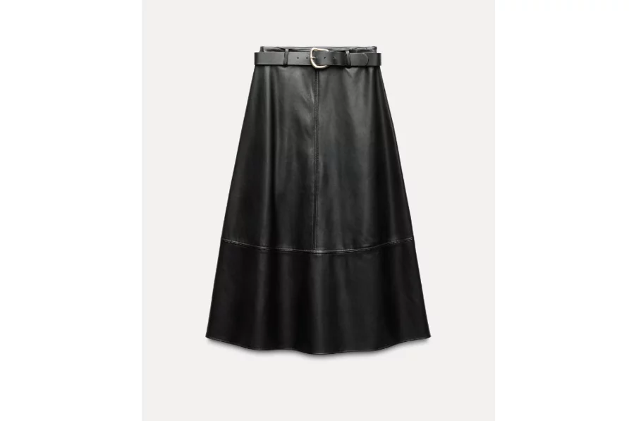 Para quienes buscan un look más atrevido, la falda efecto piel de Zara en color negro es una opción imprescindible. Esta falda de cuero es perfecta para combinar con botines y crear un estilo nocturno lleno de carácter. Además, si la acompañas con una chupa de cuero y complementos con tachuelas, lograrás un conjunto lleno de personalidad. Esta pieza es una elección ideal para esas noches de salida, donde quieres que tu look destaque.