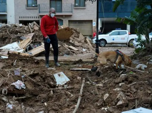 También se han desplazado en total 2.071 vehículos terrestres, aéreos y acuáticos especializados, entre otros: 12 helicópteros, 107 máquinas de ingenieros, 1.790 vehículos de intervención y transporte, 32 drones (dos más que este sábado), 41 ambulancias (cinco más que ayer), el Buque Galicia, 2 cazaminas y 18 embarcaciones; además de 22 perros de búsqueda.