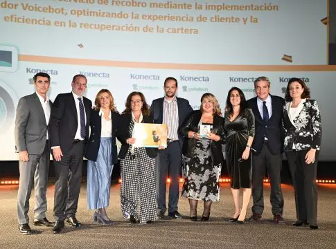 Asimismo, Konecta fue premiada como Mejor Proveedor de Recobro por el servicio de Recobro Digital. Pilar Fernández Moya y Julio Fernández Marín del equipo de recuperaciones de BNP Paribas Personal Finance España (Cetelem) asistieron a la gala y recogieron este importante galardón.