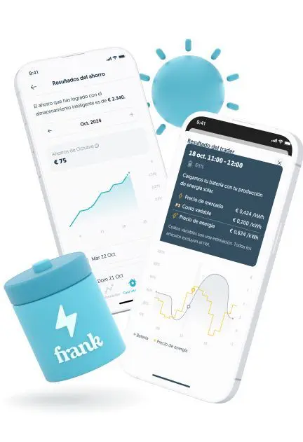 Gracias a algoritmos inteligentes, Frank Energy optimiza automáticamente el funcionamiento de dispositivos de gran consumo como paneles solares, baterías domésticas, coches eléctricos, aire acondicionado, bombas de piscina y electrodomésticos, de manera totalmente automática. Con la aplicación Frank, el usuario tiene un control total sobre su consumo y puede ver exactamente cuánto está ahorrando.