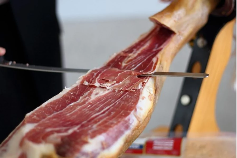 5¿Cuál es la manera correcta de cortar este jamón ibérico?