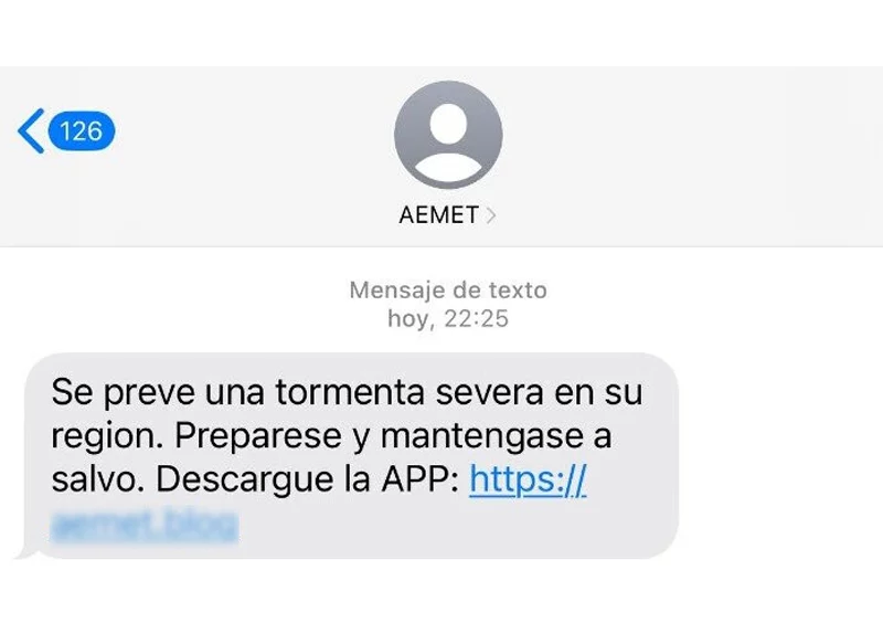 Ante la alerta de una nueva DANA que afectará a otras zonas del país, la Agencia Estatal de Meteorología (AEMET) está siendo suplantada por parte de los ciberdelincuentes, que en su nombre están enviando mensajes de texto (SMS) con los que se busca engañar a los usuarios para hacerse con sus datos.