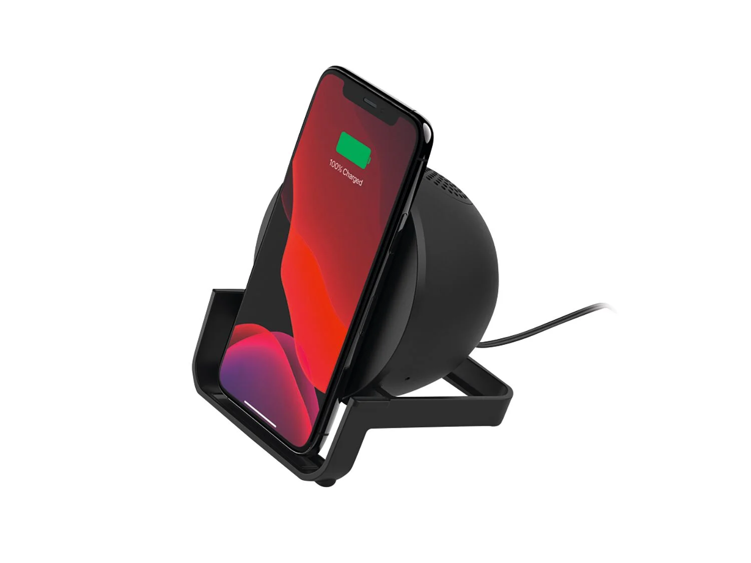 El diseño del soporte permite colocar el smartphone en posición horizontal o vertical, lo que resulta ideal para ver películas, series o realizar videollamadas mientras el dispositivo se recarga. Gracias a su tamaño compacto y peso ligero (372 gramos), el Belkin SoundForm es perfecto para cualquier espacio, desde la mesita de noche hasta un escritorio en la oficina.