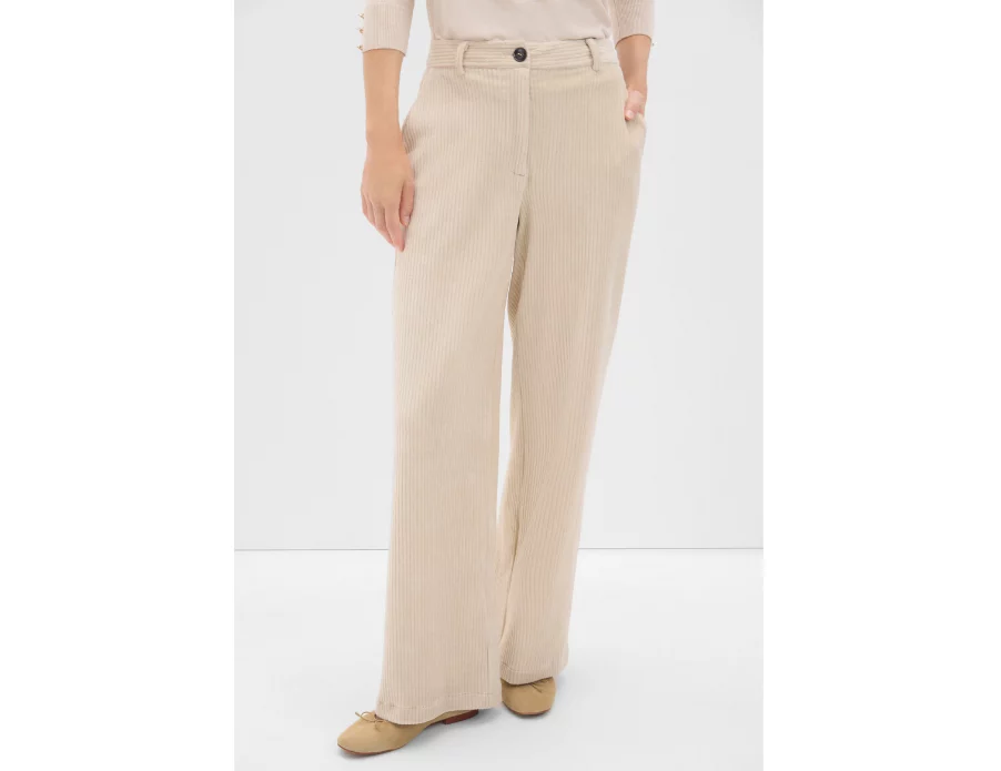 Si hay un tejido que grita comodidad y estilo en otoño e invierno, es la pana, y este pantalón ancho en color beige no decepciona. Su corte recto y diseño clásico lo convierten en una opción imprescindible para quienes buscan un look cálido y refinado.