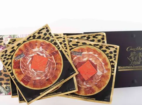 Con el jamón de Bellota 100% ibérico tiene un precinto negro y se caracteriza por un sabor más puro e intenso, que asegura una sensación fuerte y penetrante y un regusto largo y placentero, que no dejará indiferente a nadie.