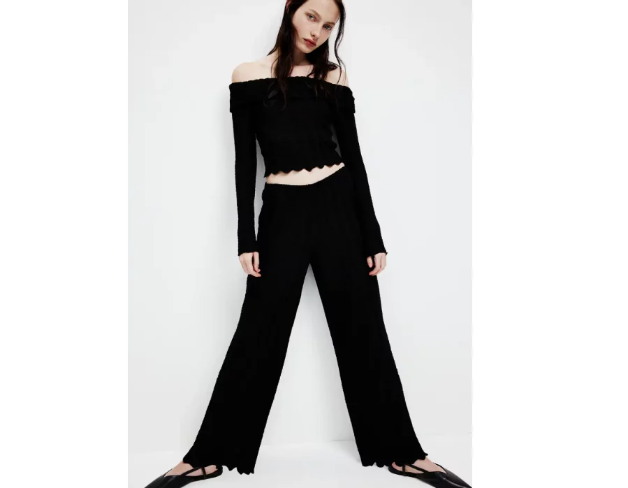 Este modelo de H&M es un básico imprescindible que combina comodidad y elegancia. Fabricado en un tejido de punto con textura, este pantalón es ideal para quienes buscan una opción que les permita pasar del sofá a una cena casual con amigos sin cambiarse. Su diseño holgado y su cintura elástica lo convierten en una prenda práctica, mientras que su bajo sobrehilado añade un toque de sofisticación.