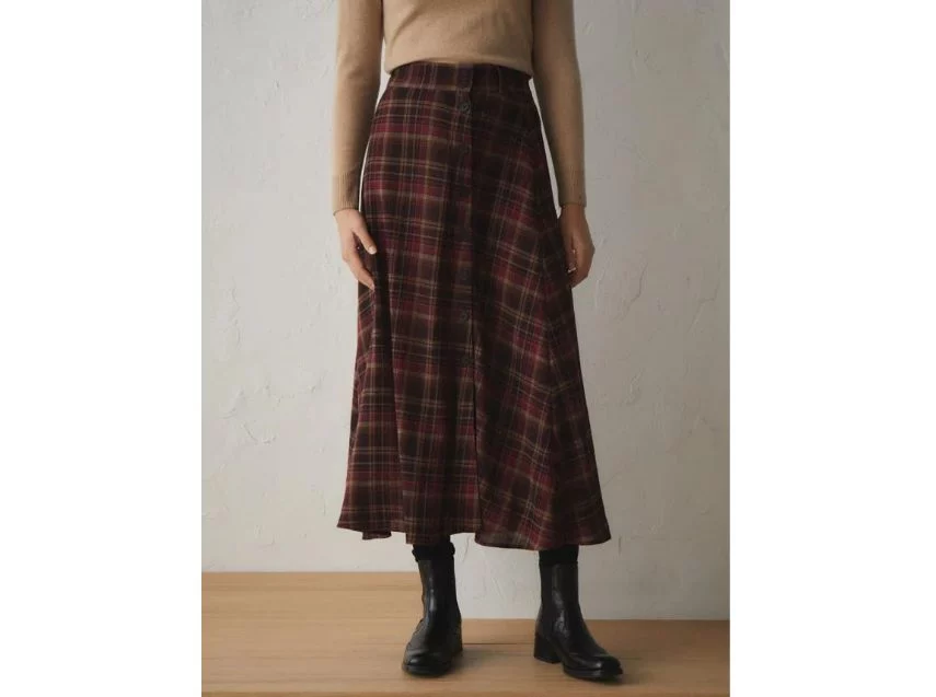 Entre las opciones disponibles, hay una que se roba todas las miradas: la falda de cuadros de Lloyd's, una prenda que combina los tonos tierra y el burdeos, el color protagonista de este invierno. Con su diseño de corte midi y botones delanteros, es la propuesta perfecta para realzar cualquier outfit con un toque chic.