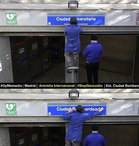 El cambio de nombre de las estaciones de Urgel y Ciudad Universitaria ha sido una intervención no oficial liderada por activistas sociales. Bajo el marco de la campaña #OpMemento, el objetivo ha sido utilizar espacios públicos como el Metro de Madrid para generar conciencia sobre el prolongado conflicto entre Israel y Palestina. La elección de los nombres temporales no es casual: buscan impactar emocionalmente a los usuarios e invitarles a reflexionar.