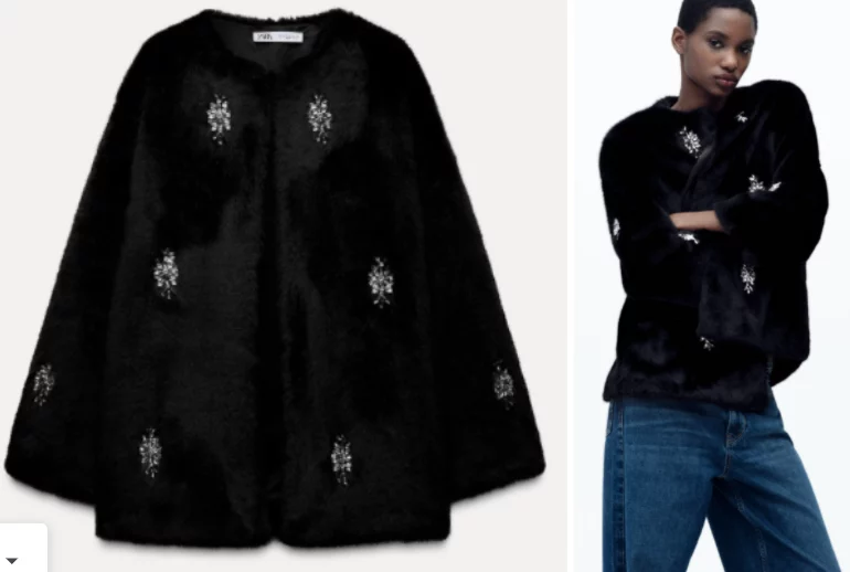 4Abrigo efecto pelo abalorios joya de Zara: Glamour y elegancia