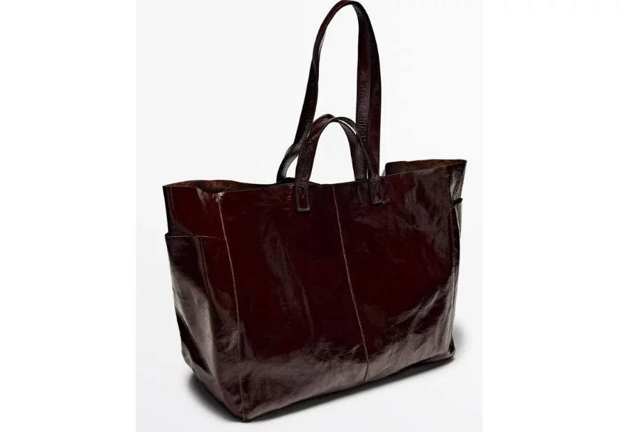 Si te gustan los bolsos grandes con mucha personalidad, este shopper efecto charol en burdeos es para ti. Su acabado brillante lo hace perfecto para una noche especial, y además, es comodísimo. Fabricado en piel, es una opción que combina estilo y funcionalidad.