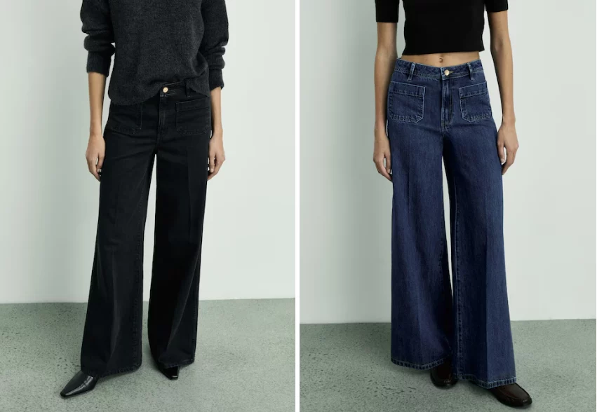 Mango siempre nos sorprende con piezas elegantes y versátiles, y sus jeans wideleg bolsillos no son la excepción. Este vaquero negro es un sueño hecho realidad para quienes buscan comodidad y estilo en una sola prenda.