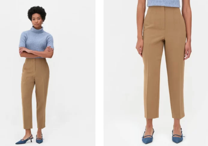 Los pantalones de talle alto de Primark presentan un diseño que combina la modernidad con lo clásico; la costura frontal añade un toque distintivo, proporcionando un acabado pulido que resalta la figura. Además, los detalles de pespuntes y pinzas no solo son decorativos, sino que también ayudan a dar forma a la prenda, creando una silueta favorecedora.