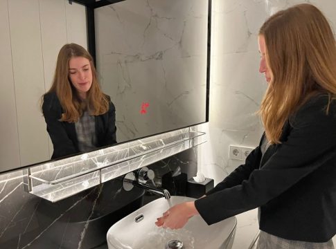 Actualmente, los 65 baños del hotel cuentan con un sistema avanzado de contadores inteligentes de agua. Estos dispositivos se activan automáticamente al abrir el grifo, iluminan una señal roja y muestran en tiempo real los litros de agua consumidos por el huésped. Esta funcionalidad permite a los usuarios visualizar y reflexionar sobre su uso de agua, fomentando pequeñas acciones que pueden generar un gran impacto, como cerrar el grifo mientras se cepillan los dientes, utilizar el pulsador de la cisterna de media carga o darse duchas más cortas.