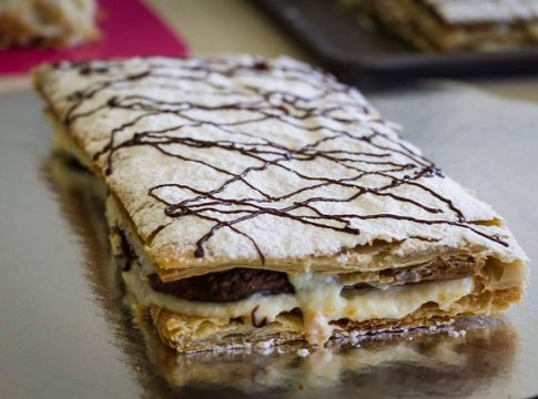 En primer lugar, las milhojas, capas de hojaldre alternadas con crema pastelera o nata montada. Su origen es francés, aunque ha llegado a todos los rincones de Europa. En España, además, se ha innovado y se ha incluido la crema de turrón o cabello de ángel en las recetas de algunas zonas.