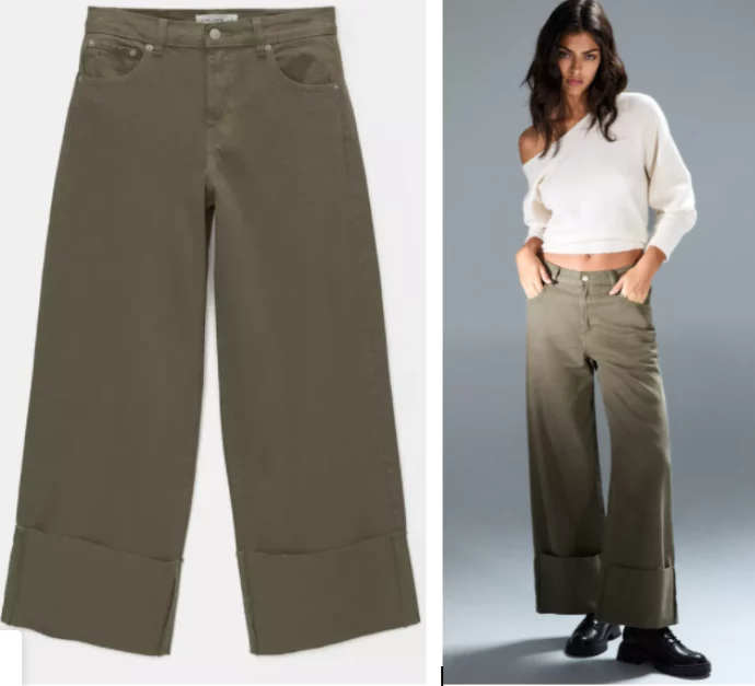 1Pull&Bear: Captura el estilo de Sonsoles Ónega con los pantalones wide leg vuelta bajo caqui por menos de 20 euros