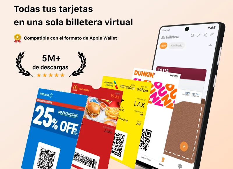 También la puedes usar para guardar tus tarjetas de fidelización y puntos de diferentes comercios y aerolíneas, todo ello para que lo tengas bien organizado y llevarlo siempre todo contigo cómodamente desde tu teléfono móvil. Para cargar las tarjetas será suficiente con escanear el código QR o directamente con un archivo que te facilitarán los servicios para agregarla a tu billetera.
