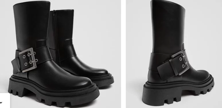 Los botines de Stradivarius, destacan por un diseño que mezcla lo clásico con lo irreverente y un toque de moda urbana, trae una maxi-hebilla latera, un detalle con mucha personalidad, disponibles en color negro, lo hace un elemento muy necesario para complementar tu outfit. Estas botas Poseen suela tipo track el cual le aporta un aire urbano y moderno.