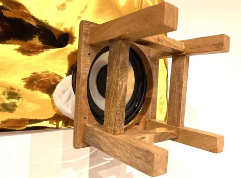 Vicens Vacca, artista pionero en el arte sonoro, presenta su última creación OR GOLD, una obra que redefine la relación entre sonido, objeto y materialidad. Disponible en vacca.cc/es/or-gold-es/. Un ensamblaje compuesto por un lienzo dorado y un altavoz listo para emitir desde la base de un taburete.