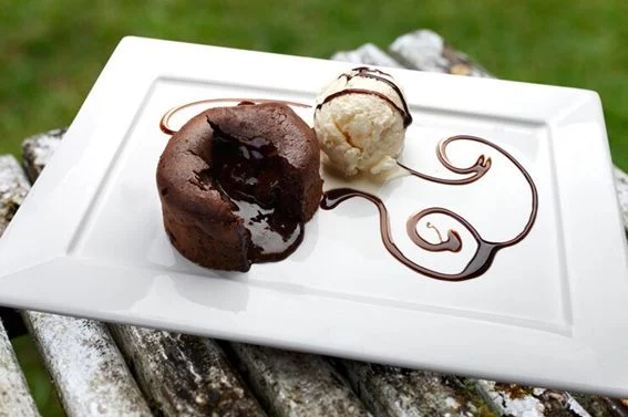 Cuando los saques del horno, deja reposar un minuto y desmóldalos boca abajo con cuidado. Ahora viene la parte divertida: espolvorea un poco de azúcar glas por encima y decora con frutos rojos. Y si quieres que tu volcán sea aún más irresistible, acompáñalo con una bola de helado de vainilla.