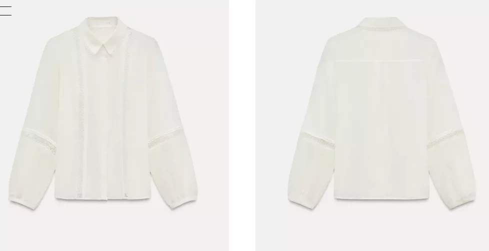 El diseño de esta blusa de Zara, cuenta con un cuello solapa con puntilla, un detalle que aporta feminidad y delicadeza. La manga larga es perfecta para las temporadas más frías. El cierre frontal mediante botones ocultos por la solapa.