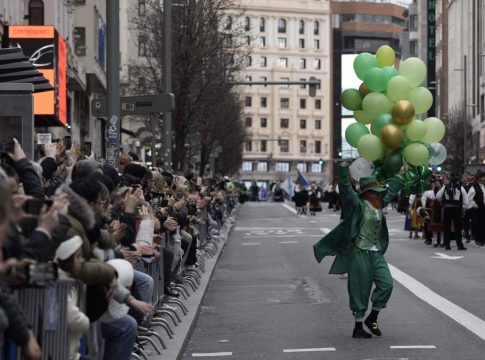“San Patricio se ha sentido en cada rincón de la Gran Vía, desde el emblemático edificio Metrópolis, donde arrancó el desfile, hasta la Plaza de España, donde los más de 600 gaiteros pusieron la banda sonora a esta espectacular tarde de sábado en el corazón de Madrid” explican los organizadores.