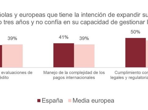 Dentro de este grupo de compañías que buscan internacionalizarse, el 41% no confía en su capacidad para gestionar correctamente en otros mercados situaciones de impagos o pagos atrasados por parte de clientes. Una inquietud compartida a nivel europeo, donde el 40% de las organizaciones con deseo de dar el salto fuera de su país, está de acuerdo con esta afirmación.