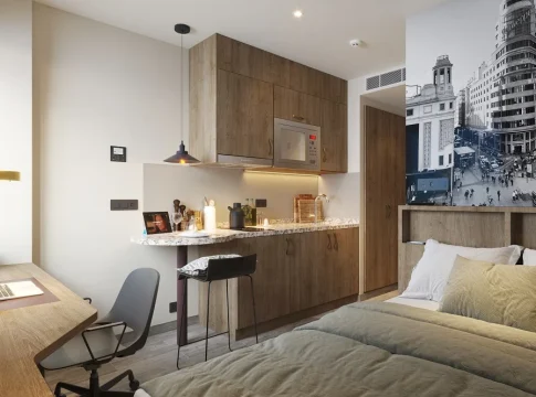 - Instalaciones de lujo: Habitaciones totalmente equipadas con mobiliario moderno, espacios de estudio ergonómicos y acabados de alta calidad.