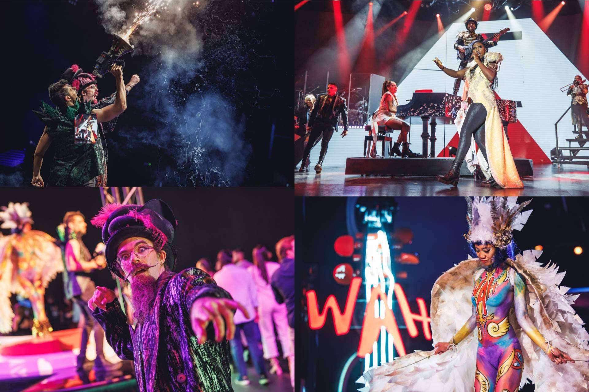 Concebido y producido íntegramente en España, WAH Show se ha consolidado como una de las experiencias más aclamadas de Europa. Un espacio de más de 2.000 m² dividido en tres actos, donde el espectador viaja por sabores del mundo, experiencias multisensoriales y un show musical de gran formato que recorre los grandes himnos de la historia con una puesta en escena absolutamente rompedora.