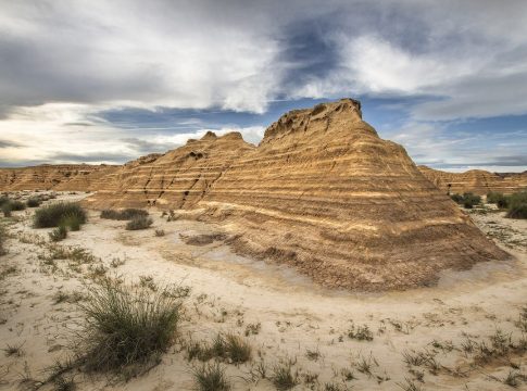 Si hay una imagen que representa a las Bardenas Reales en todo el mundo, esa es la del Castildetierra. Este cabezo, con su forma icónica que recuerda a un castillo erosionado coronado por una roca que parece flotar, es el símbolo por excelencia del parque. Acercarse a él impone un respeto casi reverencial. Uno no puede evitar pensar en su fragilidad, en cómo el próximo aguacero o una ráfaga de viento más fuerte podrían derribar para siempre esa corona de piedra. Y es que esta formación es un recordatorio constante de que el paisaje está vivo y en perpetua transformación, y que tenemos la suerte de ser testigos de su estado actual.