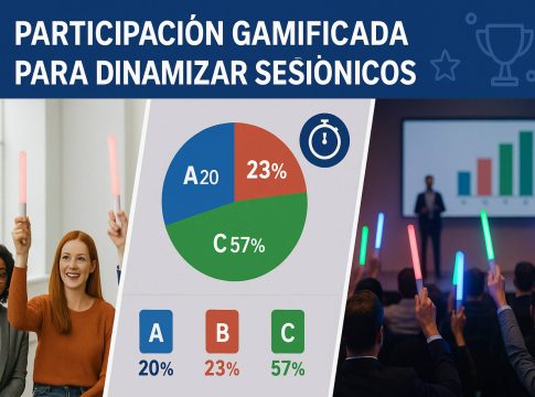 Además de su atractivo visual, esta tecnología ofrece una ventaja operativa importante: no requiere conexión WiFi ni dispositivos móviles, ya que se integra directamente con presentaciones en PowerPoint. Esto la convierte en una solución práctica y fácilmente aplicable en congresos con grandes audiencias.