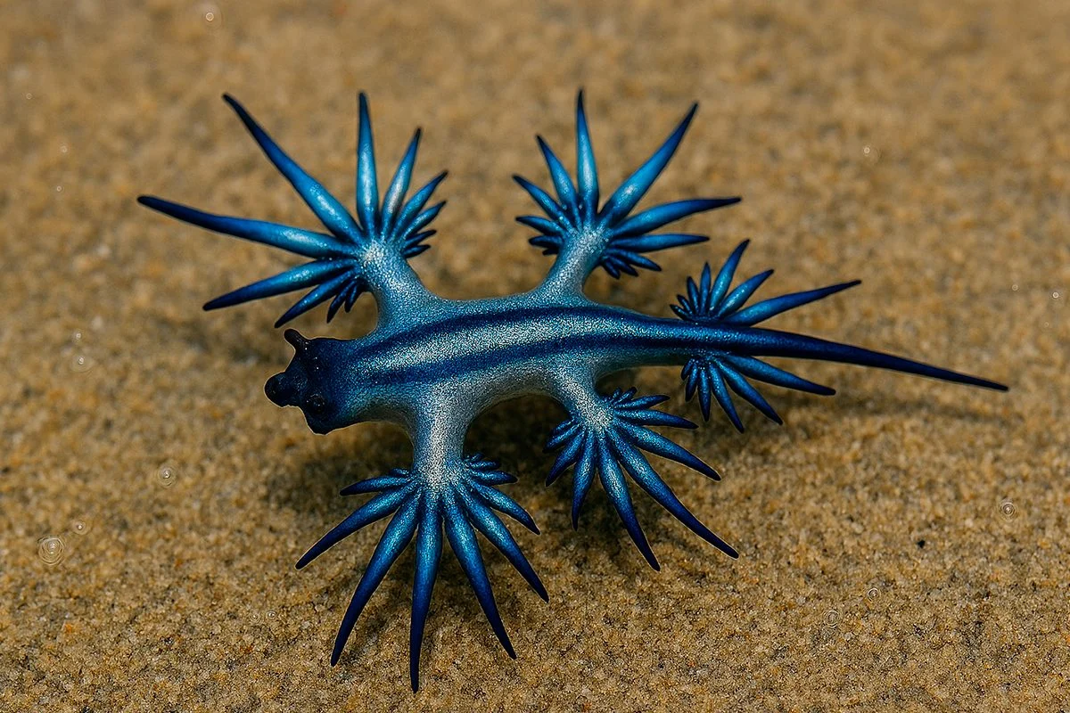 Los dragones azules son una especie de babosa marina que hasta hace poco no se habían visto en la zona sur de España, pero que cada vez están más presentes y los expertos y autoridades vinculan su presencia con el calentamiento de las aguas del Mediterráneo.