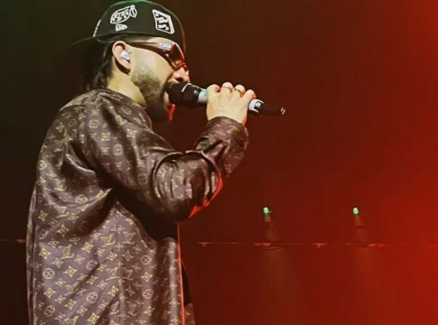 Las luces de la pantalla son suficiente para superar el nivel que puede captar la cámara, el ruido de la gente puede tapar los oídos. Mora, uno de los grandes fenómenos puertorriqueños que ha ayudado a poner la isla caribeña en el centro del panorama de la música en español, sale a escena rodeados de luces que van del neón. Sabe crear expectación, también sabe controlar a una audiencia y crear una fiesta, y hacer que la gente baile.