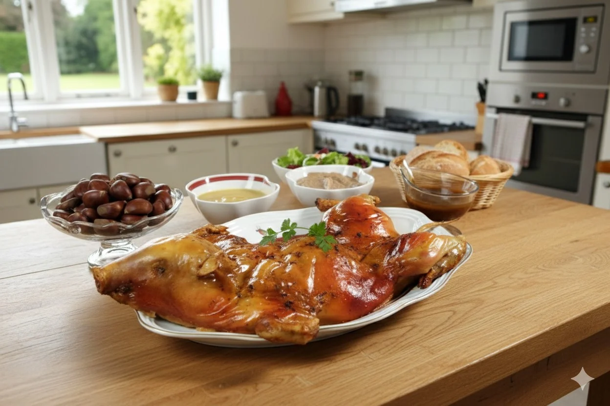 La preparación previa implica una limpieza exhaustiva y un secado perfecto antes de comenzar con el ritual del agua hirviendo. Debemos tener claro que el exceso de humedad interna inicial puede cocer la carne en lugar de asarla arruinando el proceso. Siguiendo el consejo del maestro, abrir la pieza en canal por el espinazo y sazonarla solo con sal es el preludio indispensable para que el calor obre el milagro posterior.