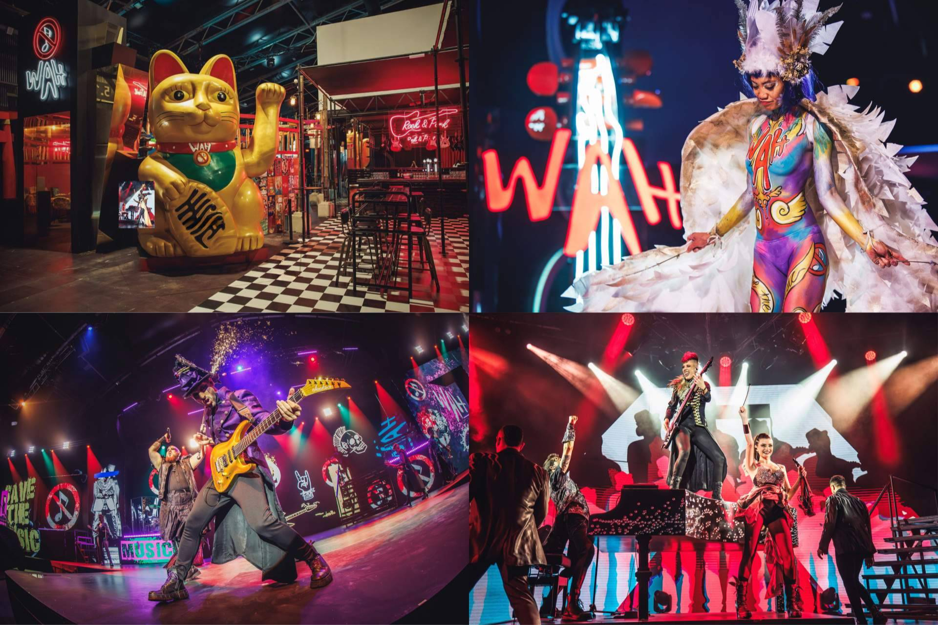A continuación, el público accede al corazón de WAH Show: un impresionante teatro donde más de 40 artistas dan vida a una historia épica a través de grandes temas musicales, visuales sorprendentes y una dirección artística inolvidable.
